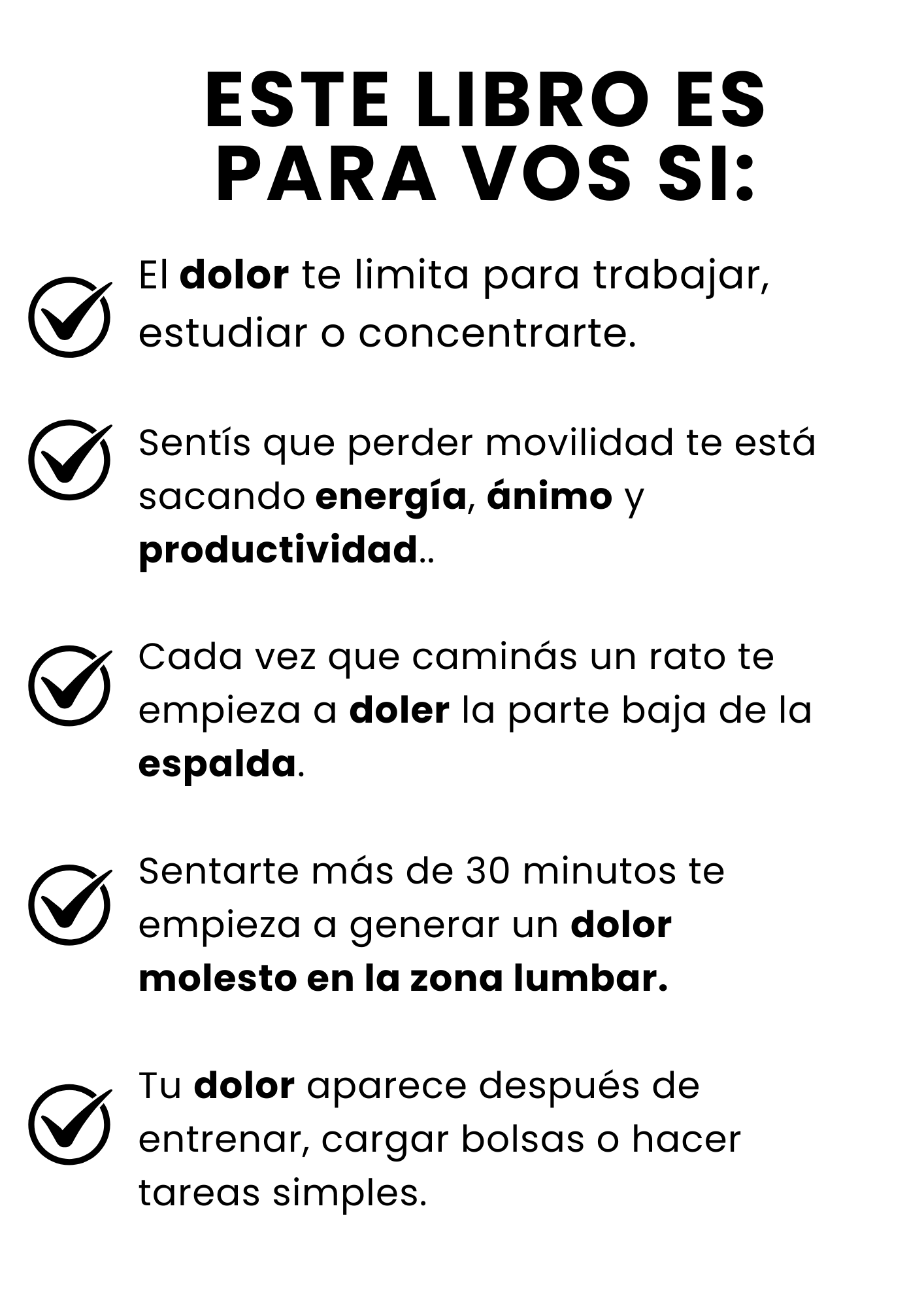 Incluye el método completo, rutinas de movilidad, ejercicios de alivio inmediato, fortalezas clave, hábitos diarios, manejo emocional y un plan de 30/60/90 días.